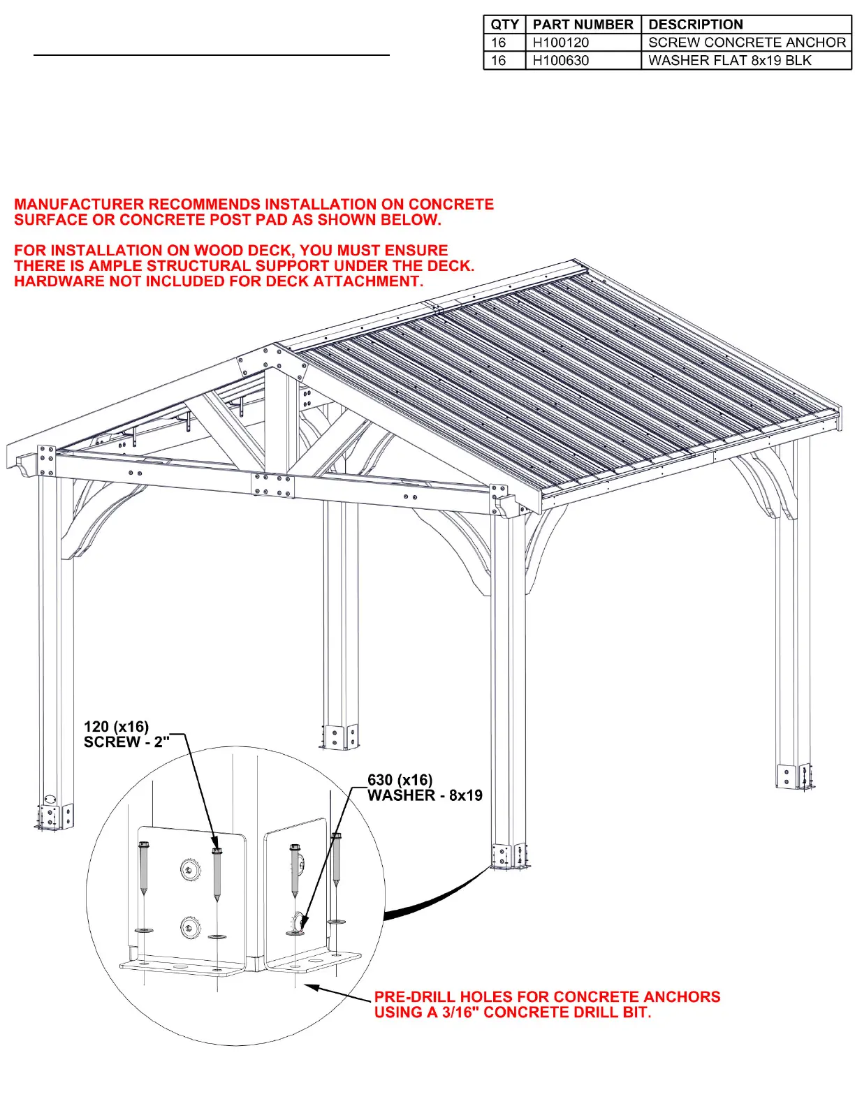 Backyard Discovery ARLINGTON - Gazebo Assembly: Concrete Anchor Installation