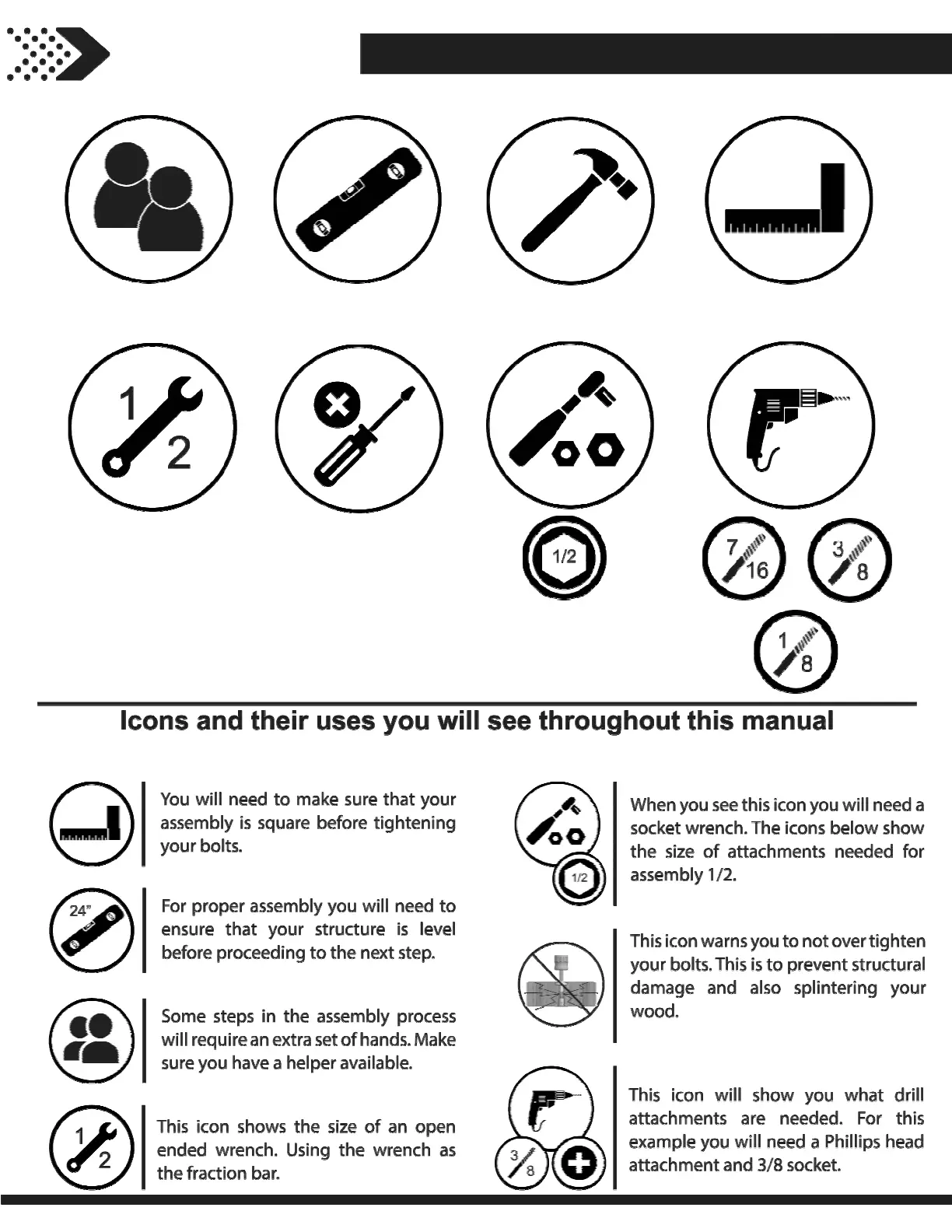 Backyard Discovery Aurora - Tools and Icon Guide; Required Installation Tools