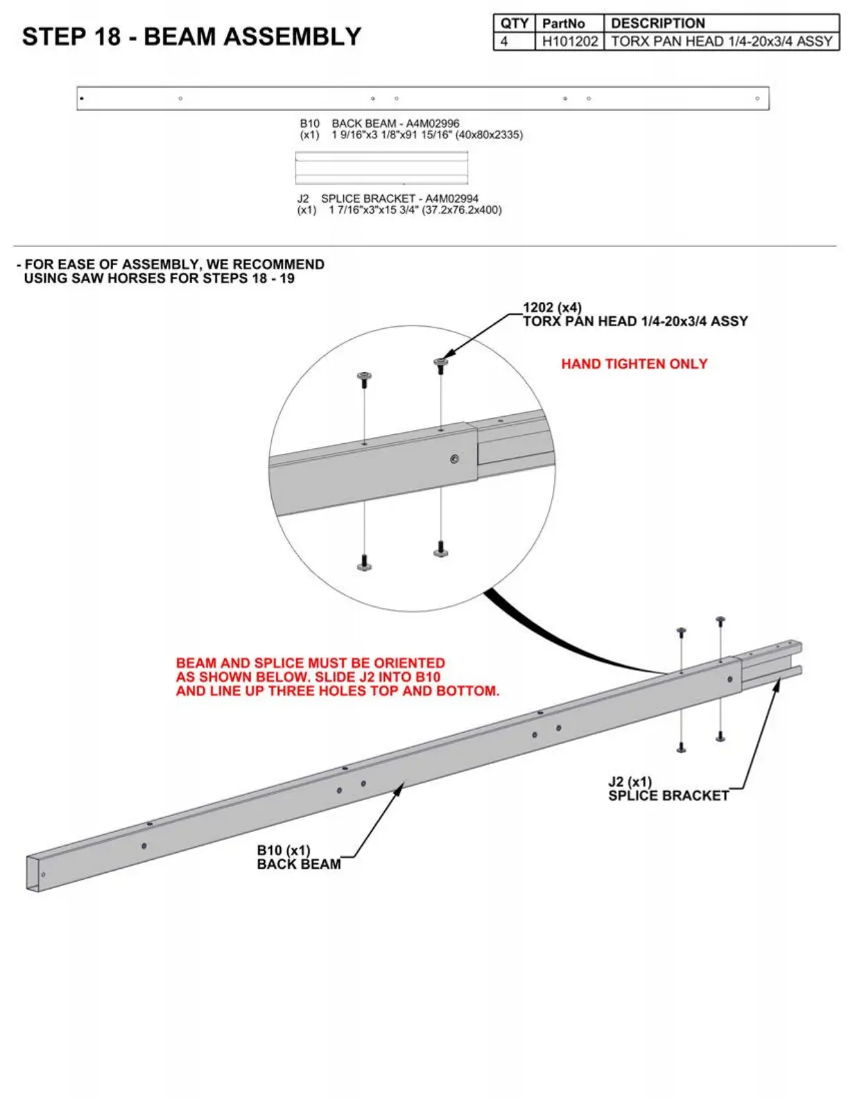STEP 18 - BEAM ASSEMBLY