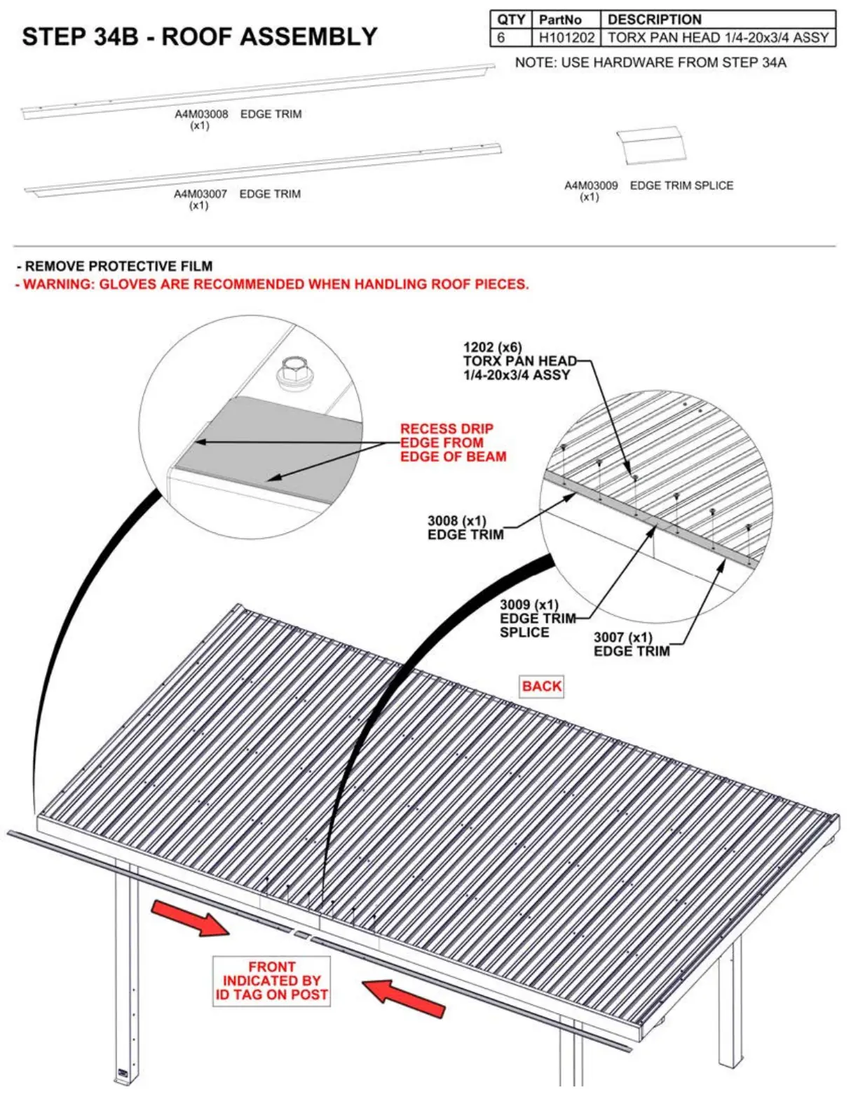 - WARNING: GLOVES ARE RECOMMENDED WHEN HANDLING ROOF PIECES.