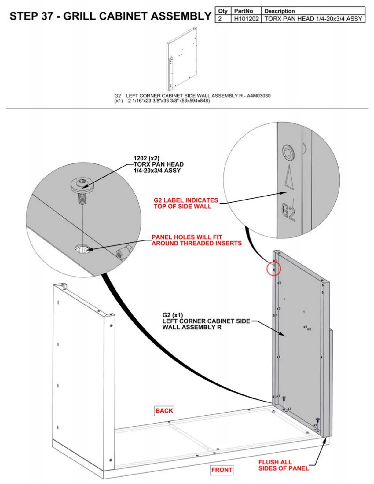 STEP 37 • GRILL CABINET ASSEMBLY 2 H101202 TORX PAN HEAD 1/4-20x3/