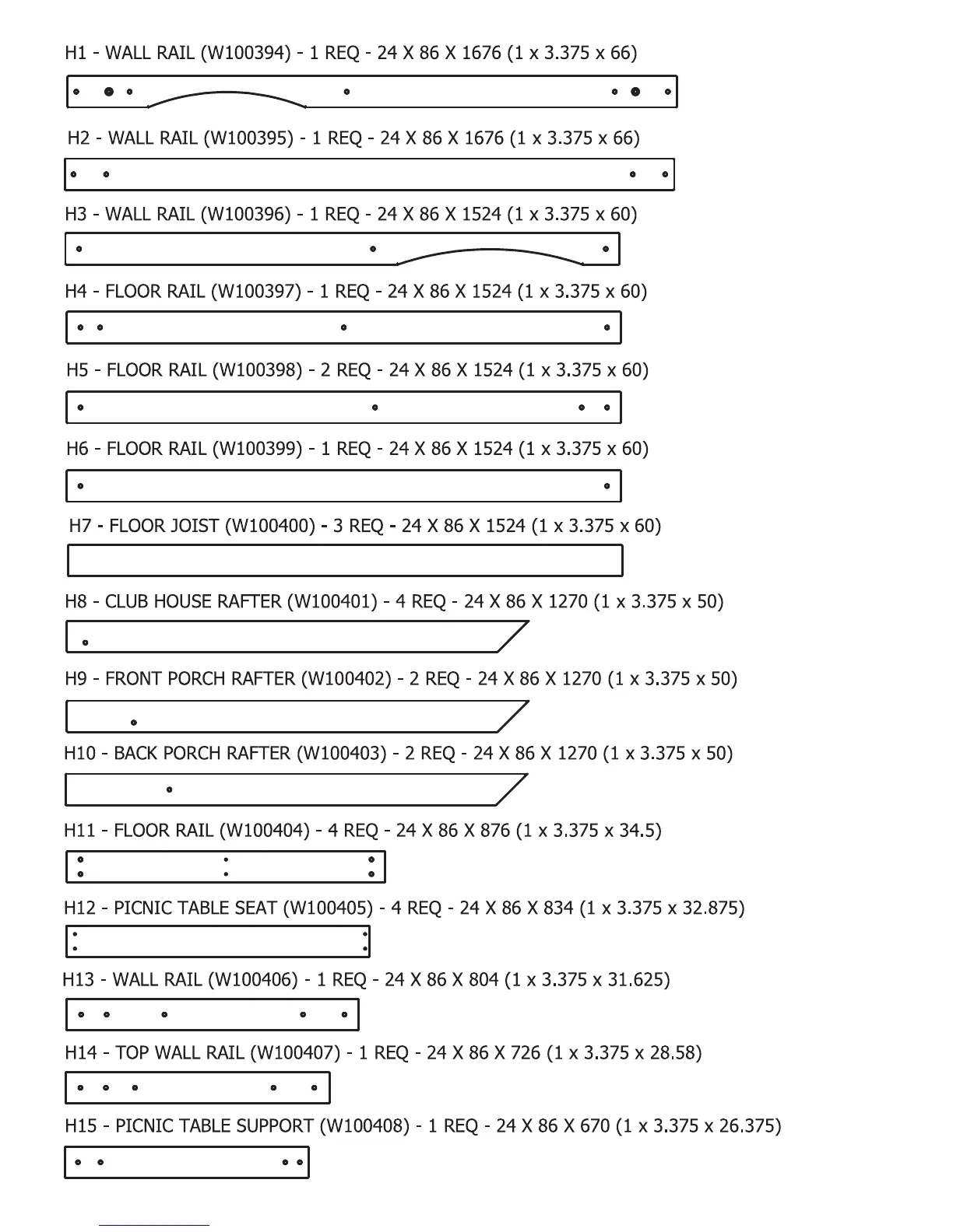 PAGE 14 - WOODEN PARTS H1 - H15