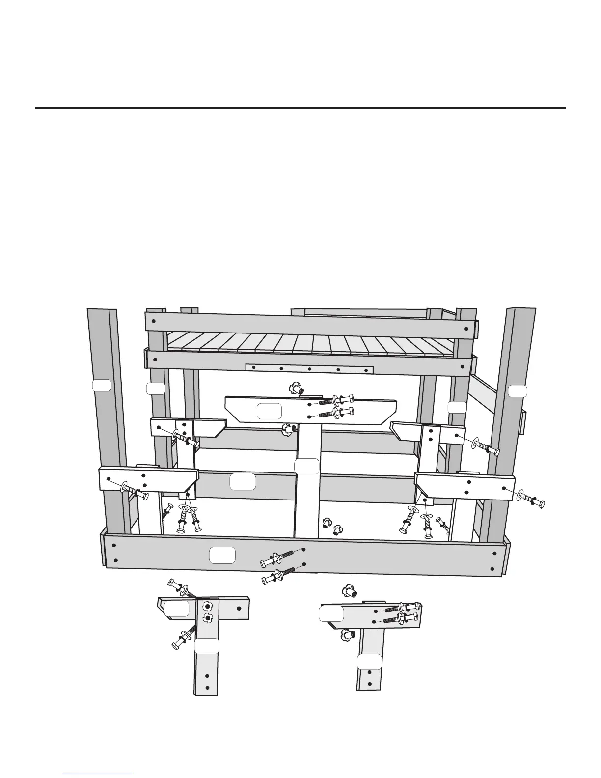 Attach H15 Picnic Table Support to G6 Base Board with 5/16”x 2” Hex Bolts, 5/16” Lock Washers, Washers and 5/16”