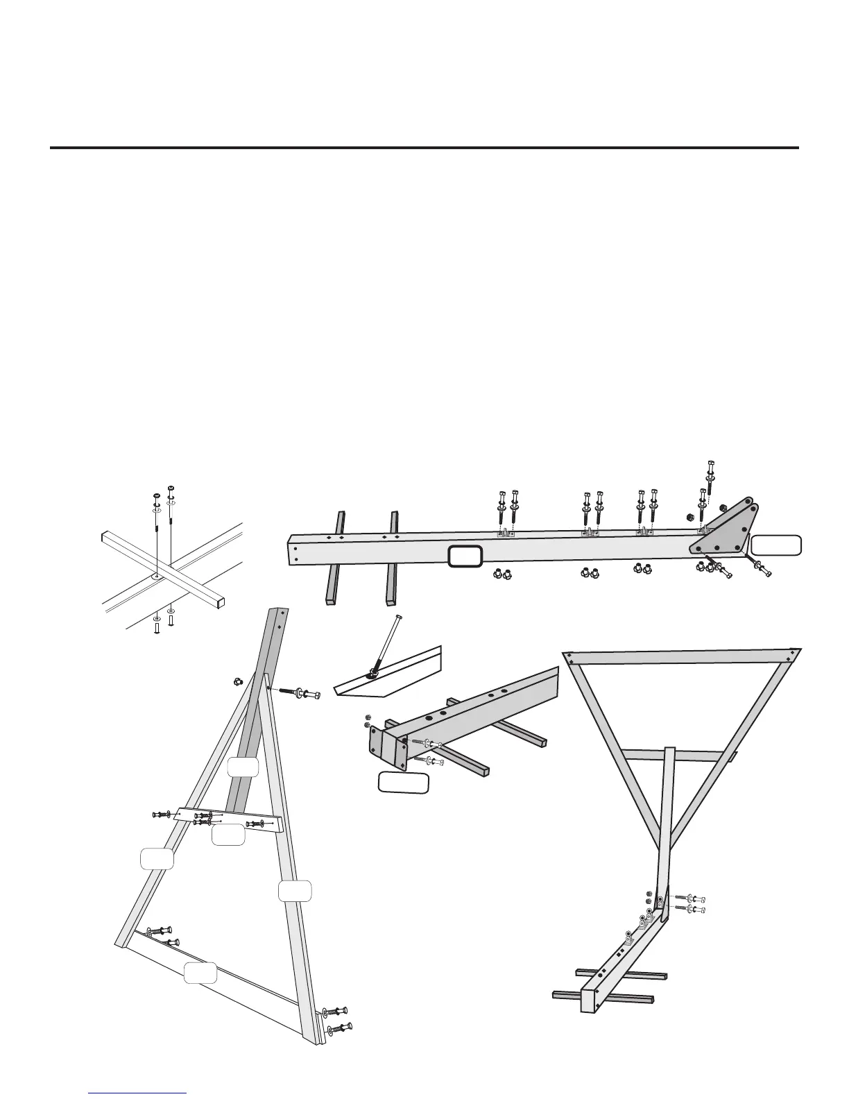 Attach G1 Ground Board to E1 Angle Braces with 5/16”x 2” Lag Screws, 5/16” Lock Washers and Fender Washers.