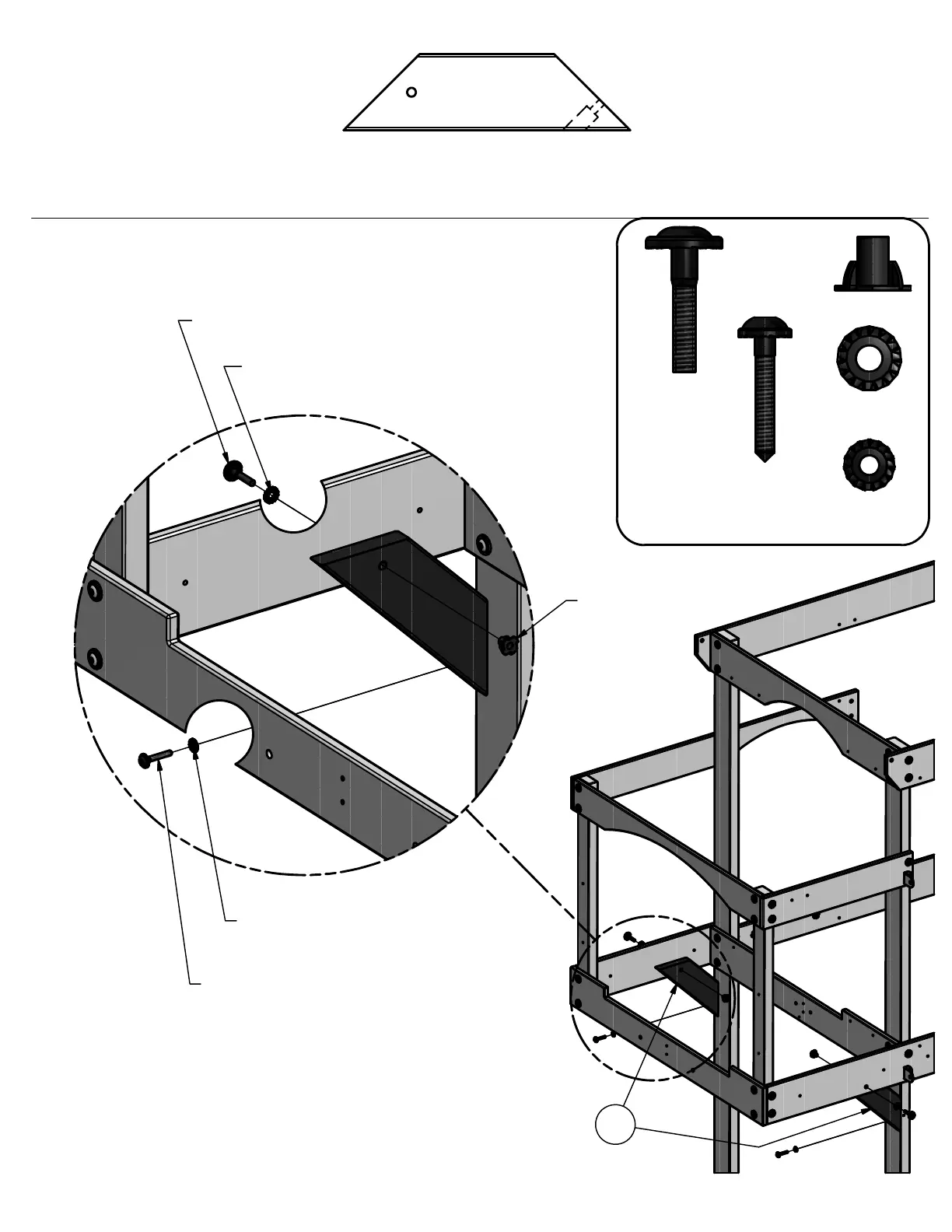 INSTALL T-NUTS INTO PARTS BEFORE ASSEMBLY OF