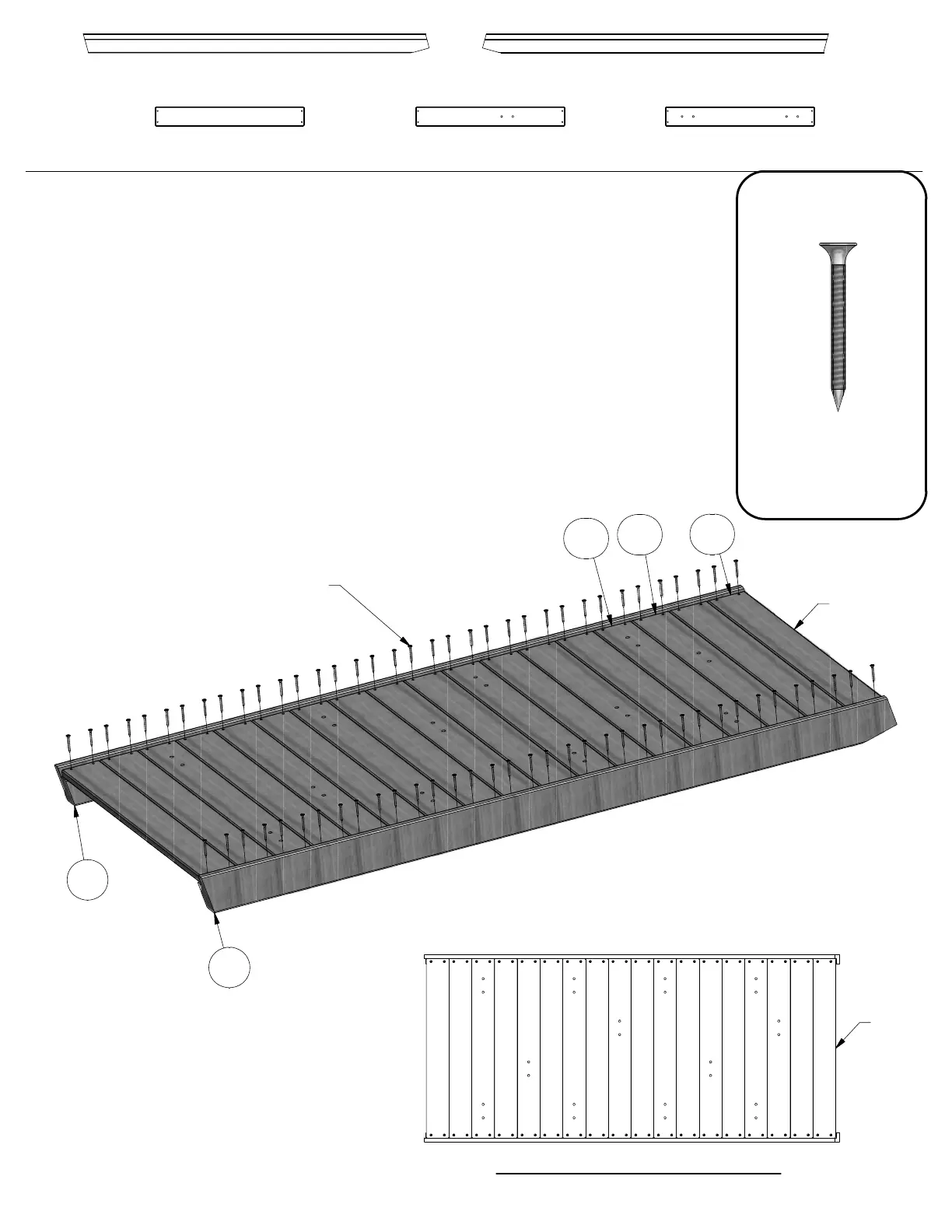 USING BOARDS AS A TEMPLATE, PRE-DRILL EDGES OF RAILS USING 1/8" DRILL BIT.