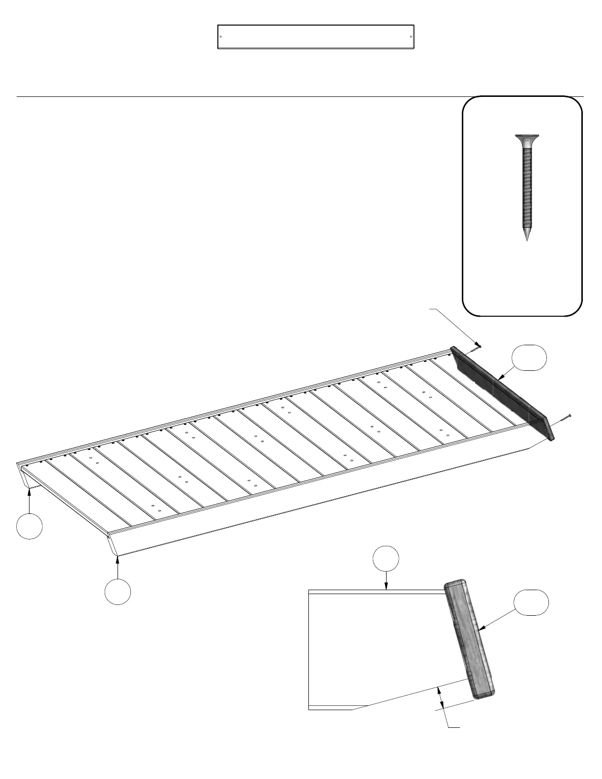 ATTACH M108 ROCK WALL END BOARD TO E72 & E73 RAILS USING 1 1/2" SCREWS.