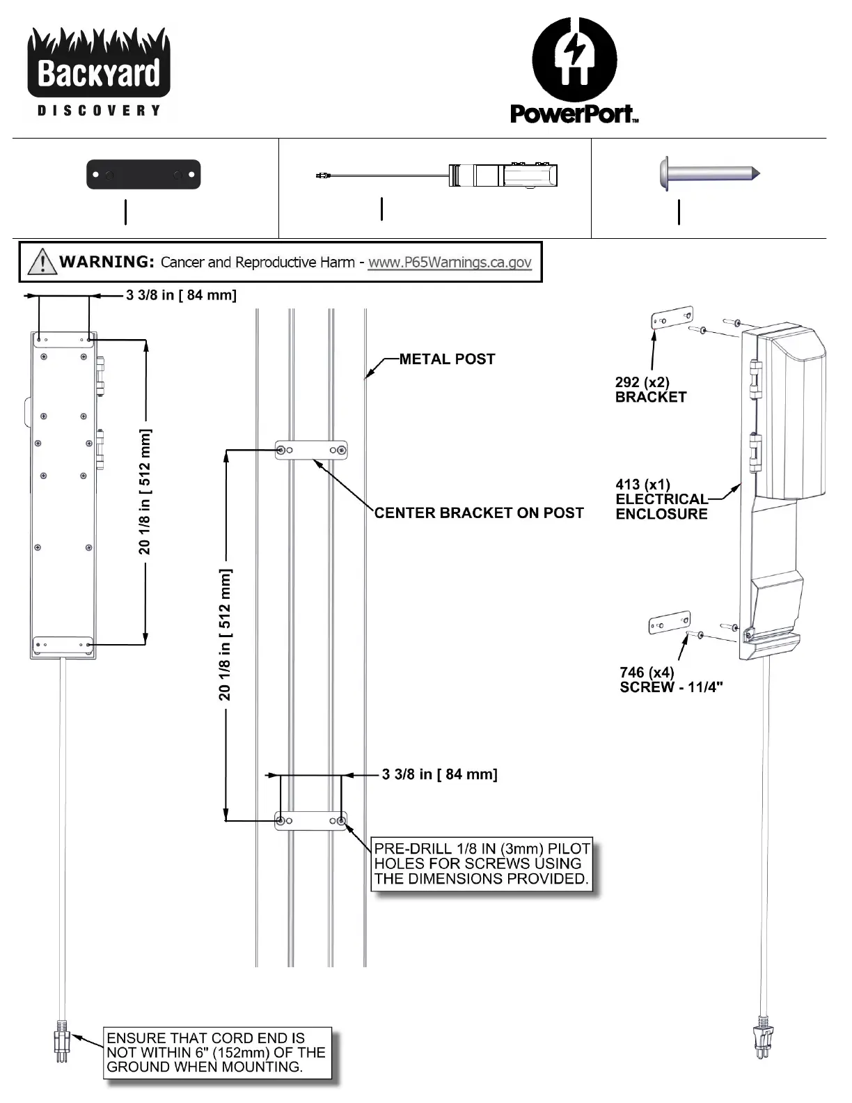Backyard Discovery SOMERVILLE - PowerPort Metal Post Mounting Instructions