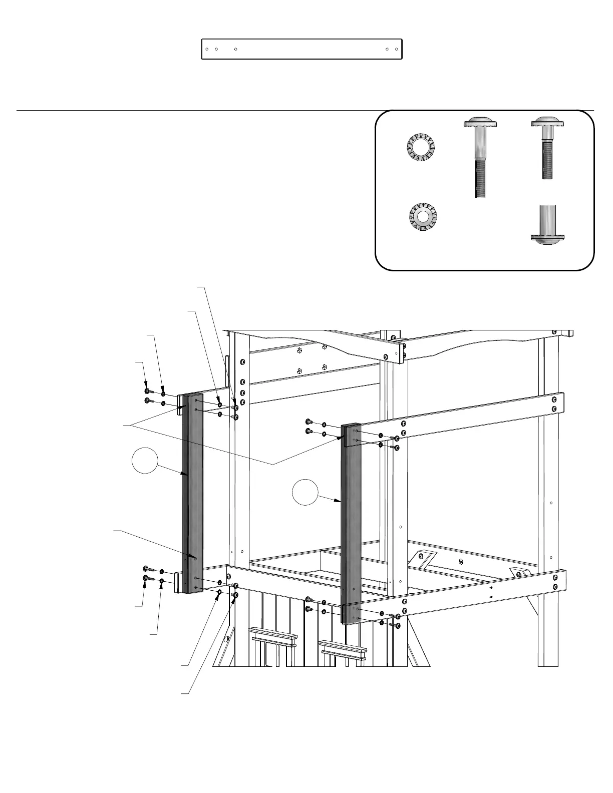 Backyard Discovery Tanglewood - BOLT WH 5;16 X2; BOLT WH 5;16 X1 1;2; Note Edge Bored Holes for Orientation; NUT BARREL WH 5;16 X7;8
