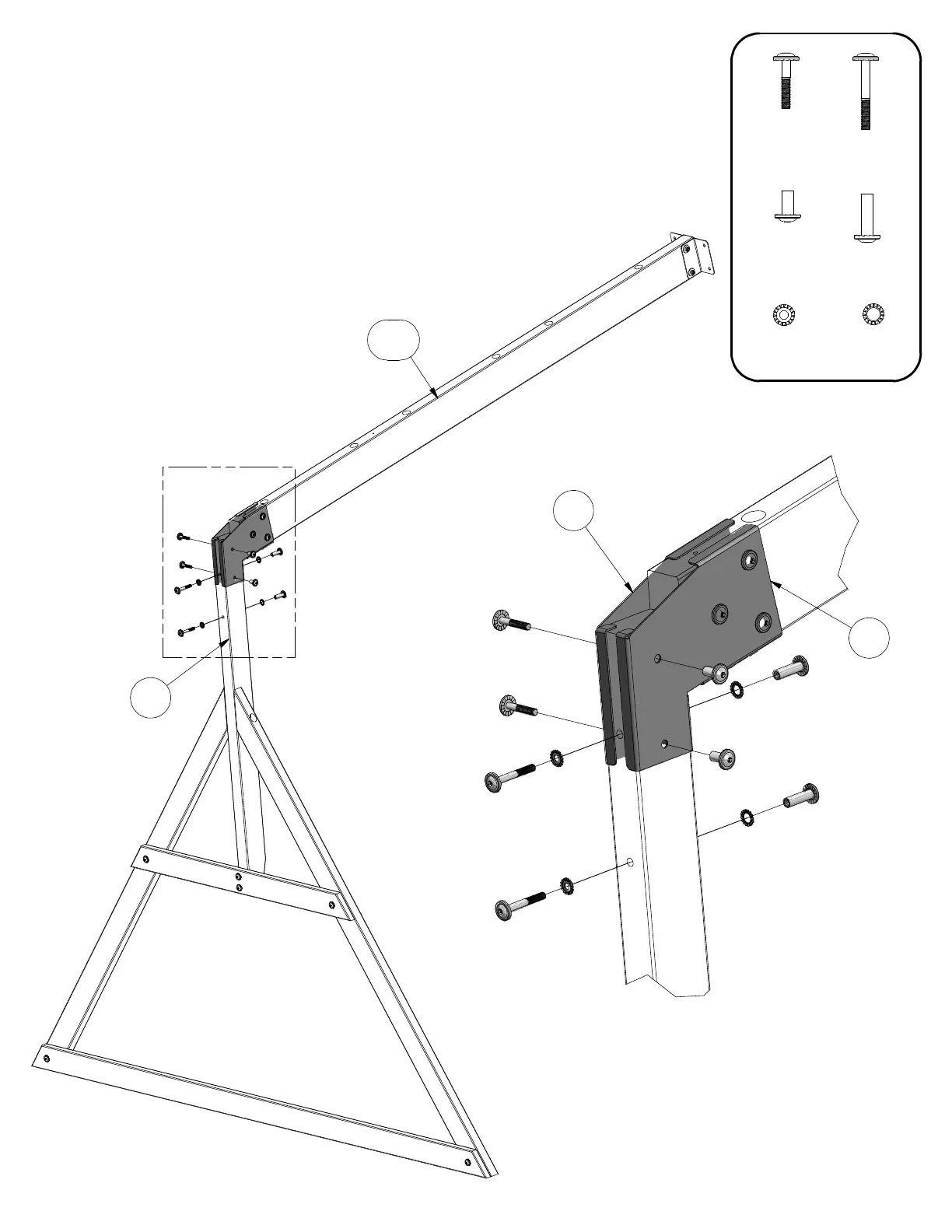 INSERT 2-1/2" BOLTS, LOCK WASHERS AND
