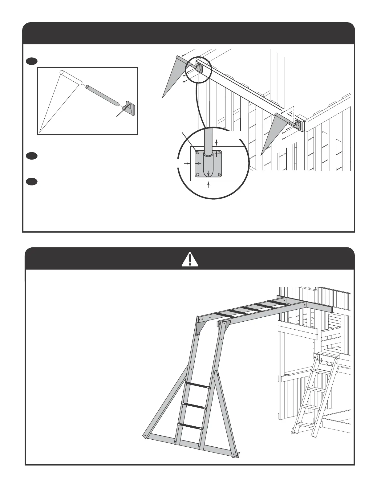 BEGIN ASSEMBLING AND INSTALLING MONKEY BARS HERE.