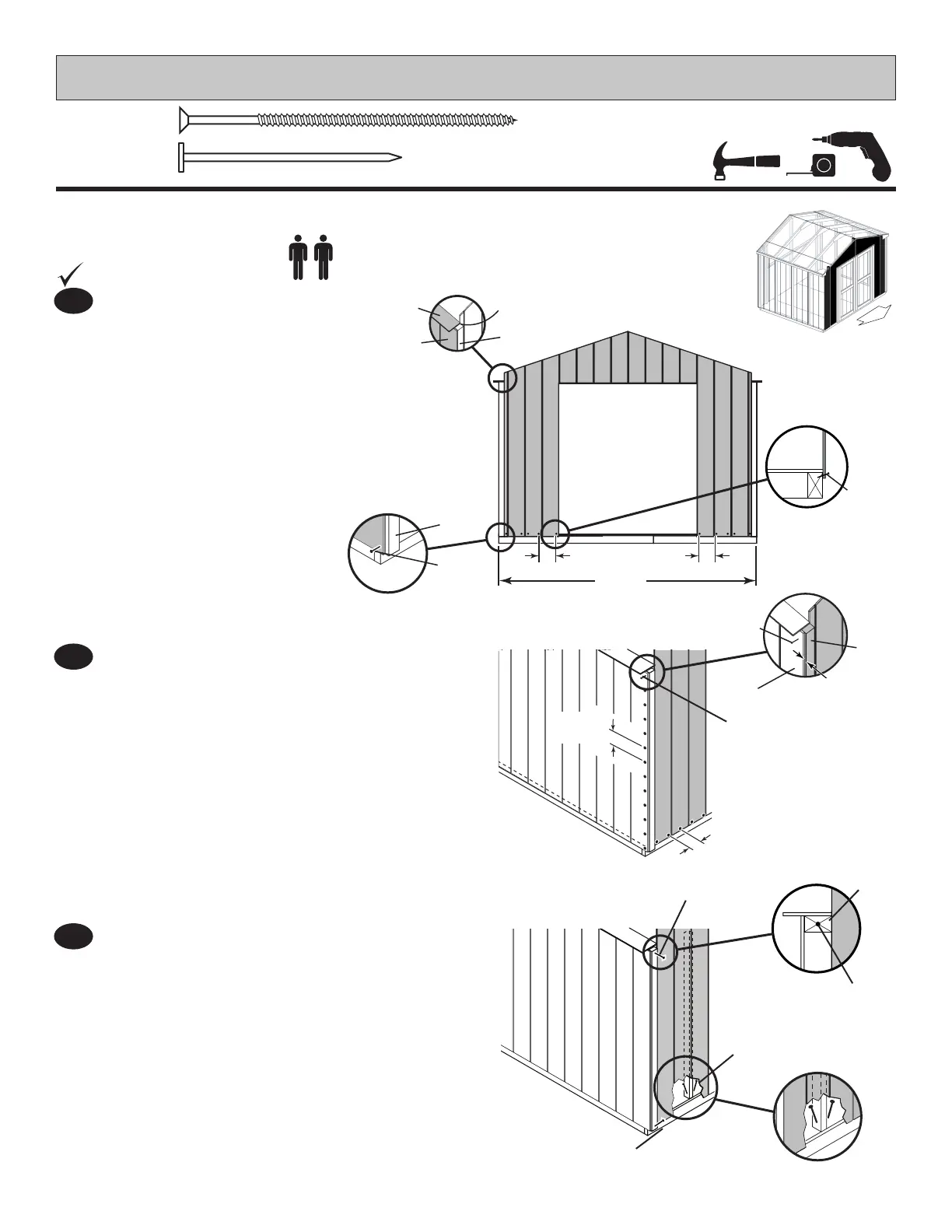 Secure the front wall frame with (2) 3" screws
