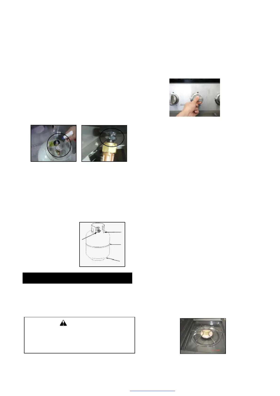 Never test for leaks with a flame. Prior to first use, at