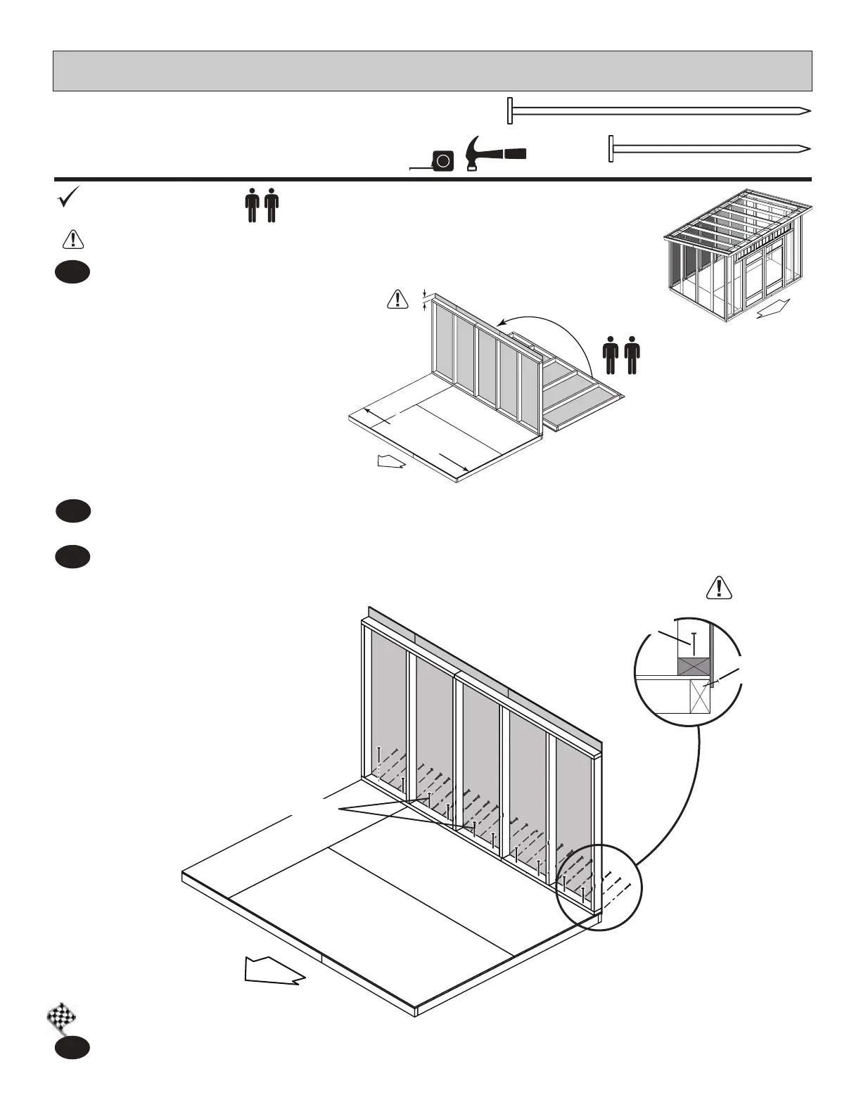 Secure side wall bottom plate to oor using 3" nails (Fig.A).
