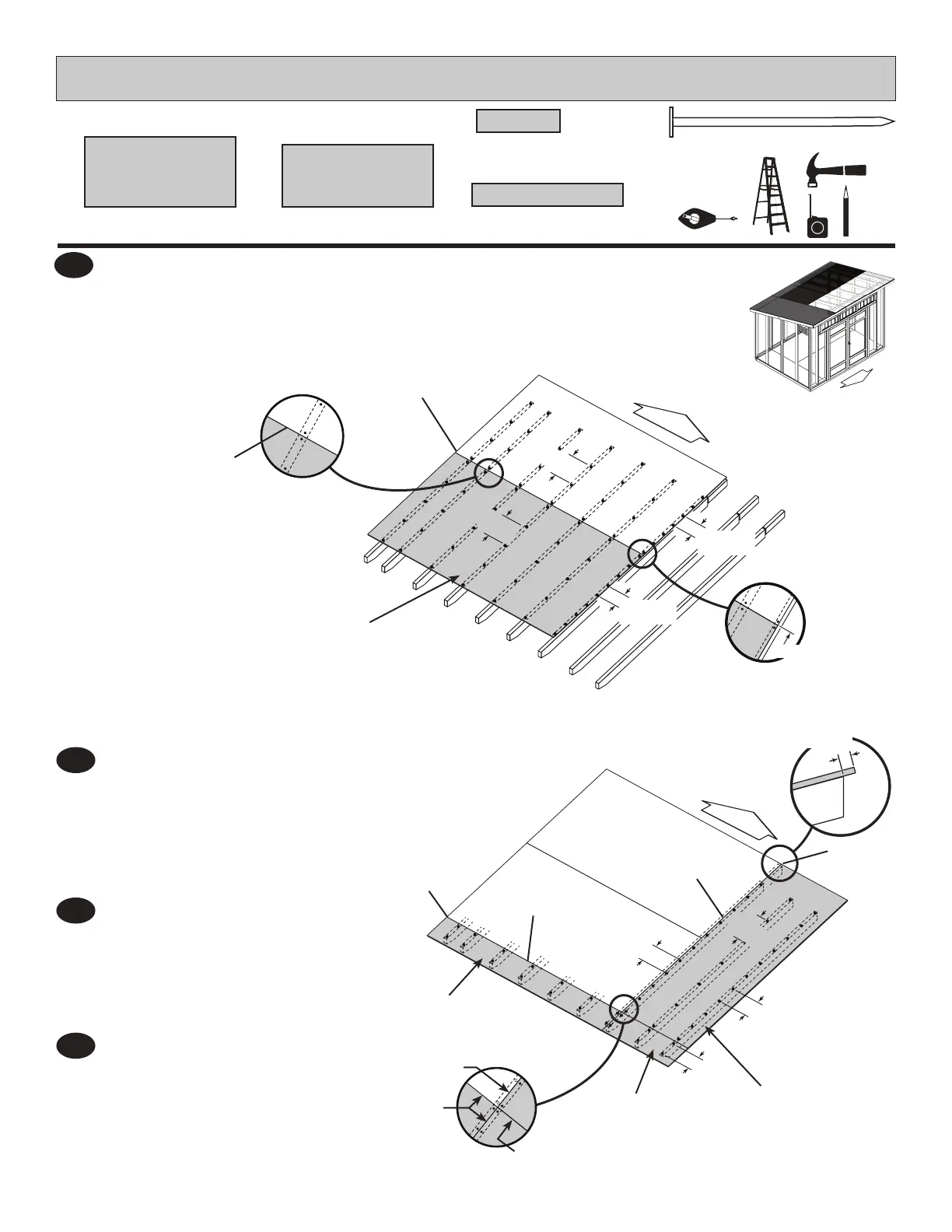 Nail the rst 48x96"roof panel using 2" nails 6" apart on edge and 12" apart inside panel.