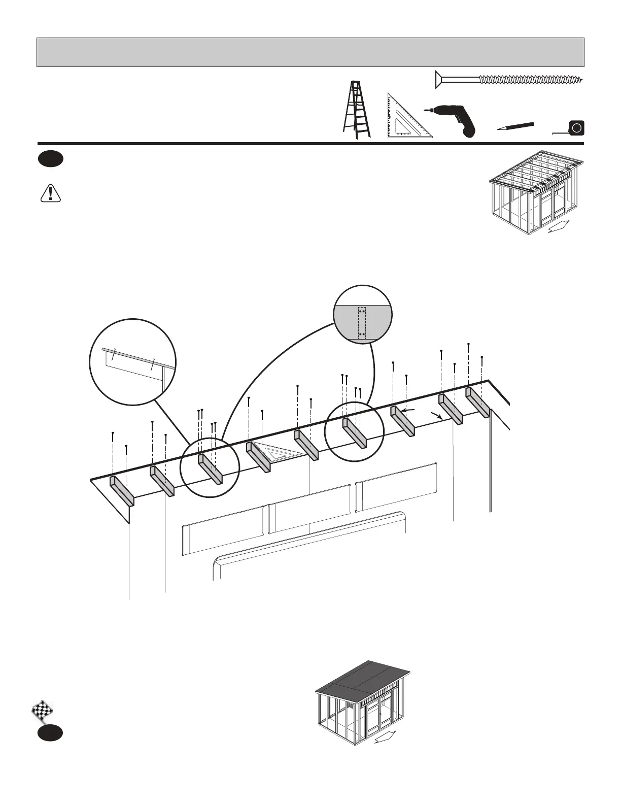 Line up each rafter extension 90 degrees square with roof rafters as shown.