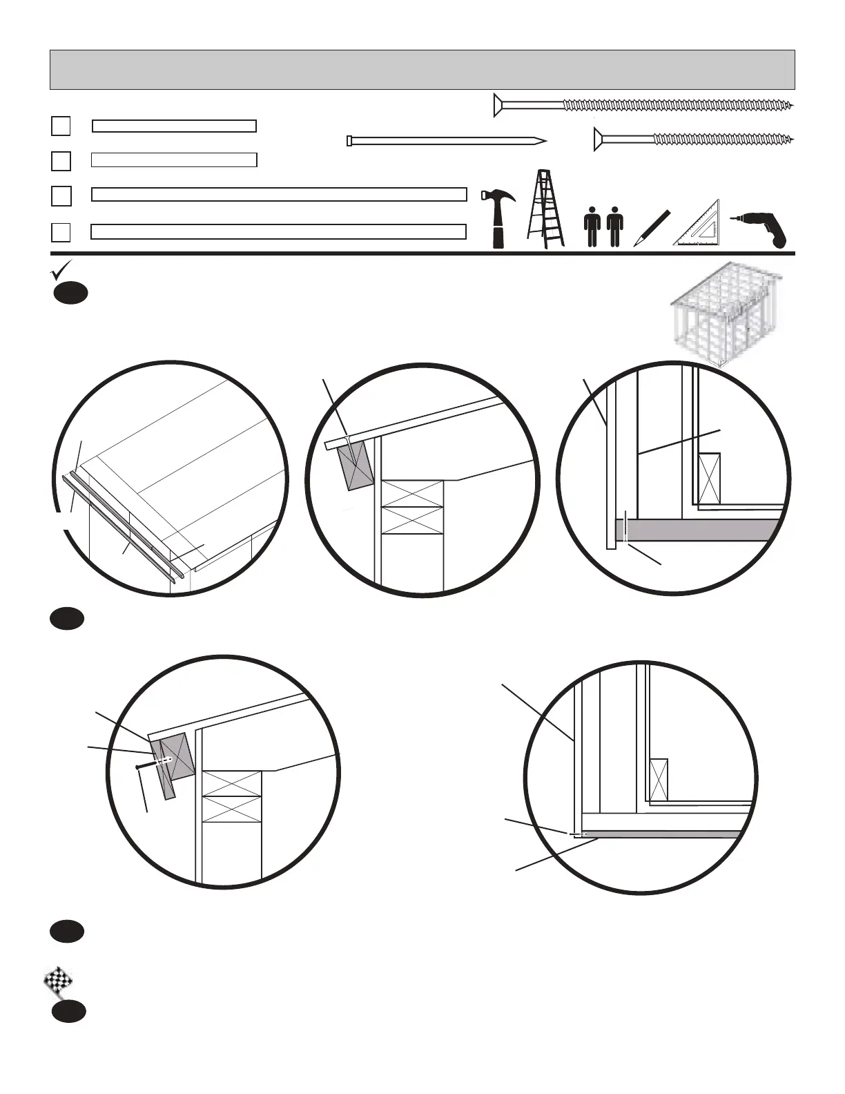 Attach PTand FS with 2" wood screws through roof sheathing and (1) 3" screw at OYon both ends