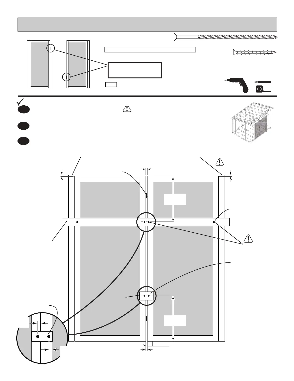 Attach temporary support GAA with two 1-1/4" screws as shown.