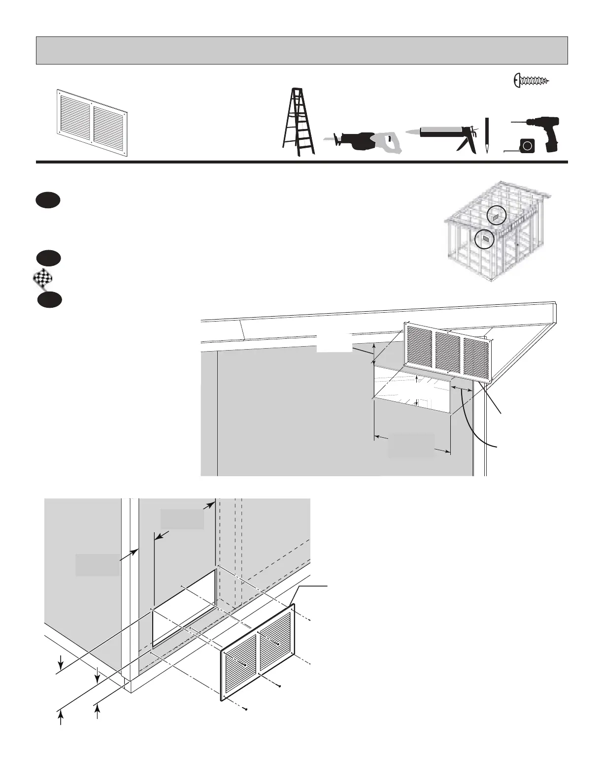 Locate and mark for two vents in side walls as shown. (1) at top and (1) at bottom