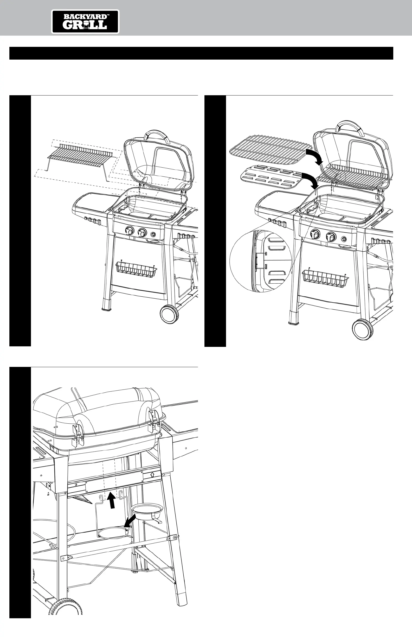 Fije el soporte del recogedor de grasa y coloque el