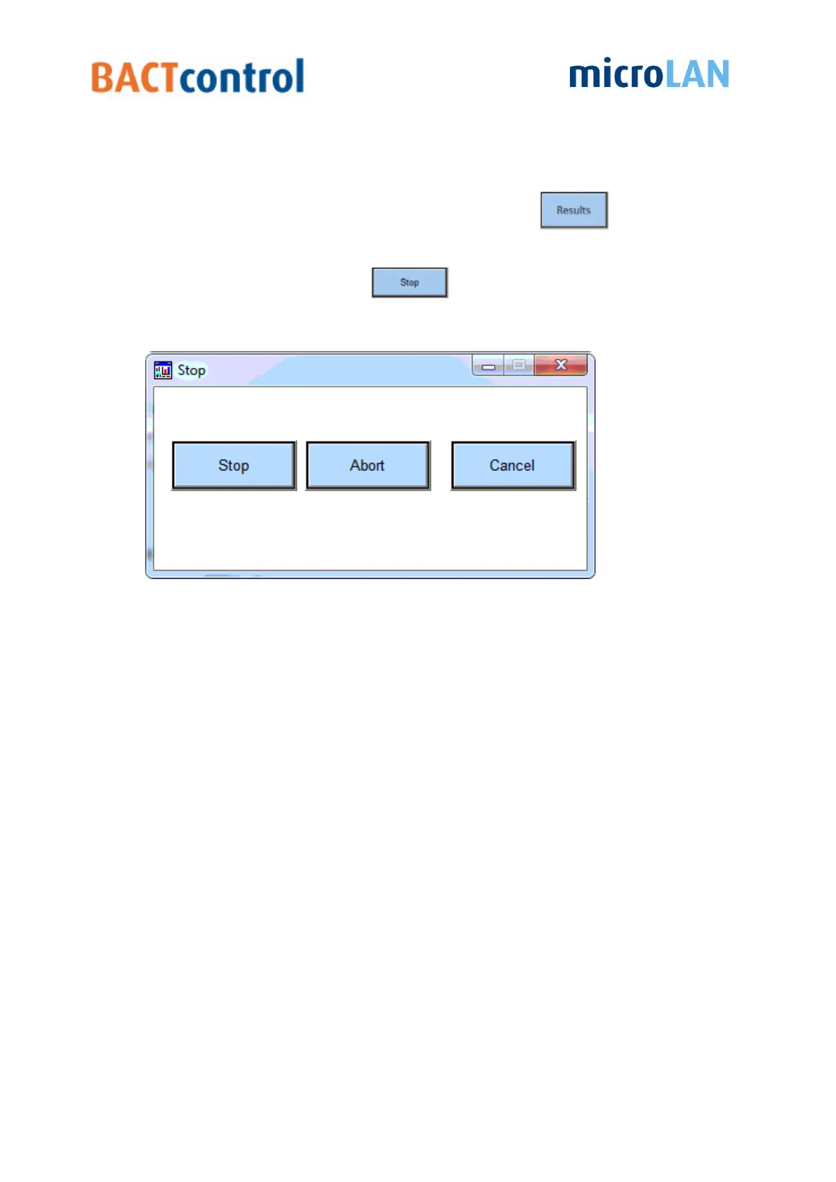 I. Stop, the BACTcontrol will finish the current measurement according to the normal