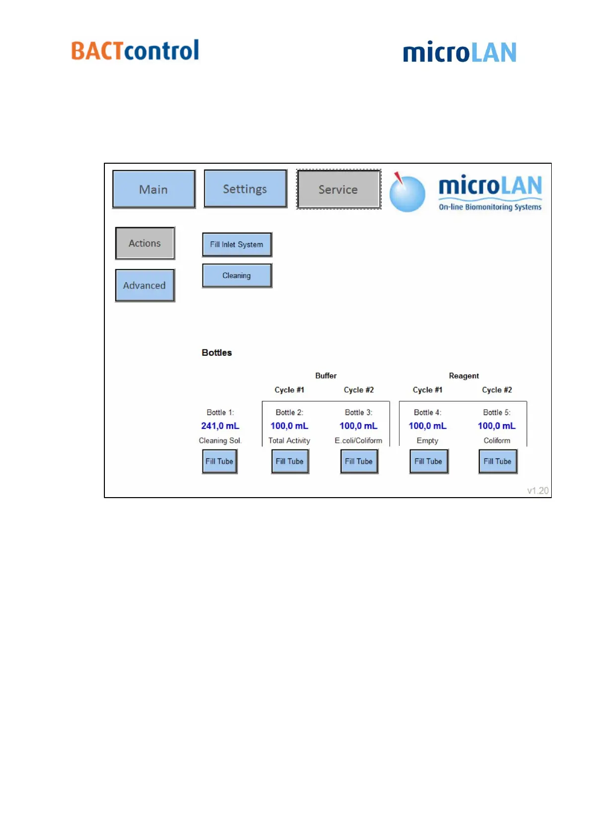 (For more detailed information about service: view the BACTcontrol Software manual)