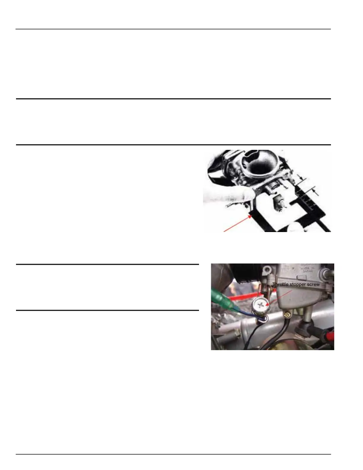• Warm up engine; adjust the throttle stopper screw of throttle valve to standard RPM.