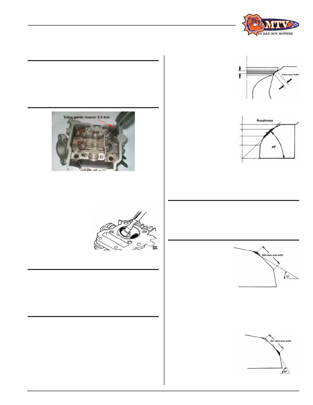 • Use 45° valve seat chamfer cutter to cut any rough