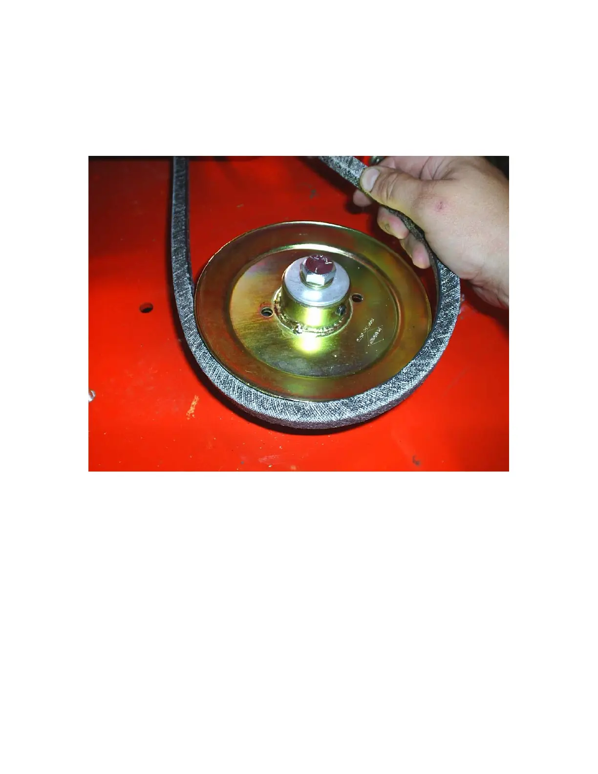 To remove the deck belt, lift up on the belt while rotating the pulley to