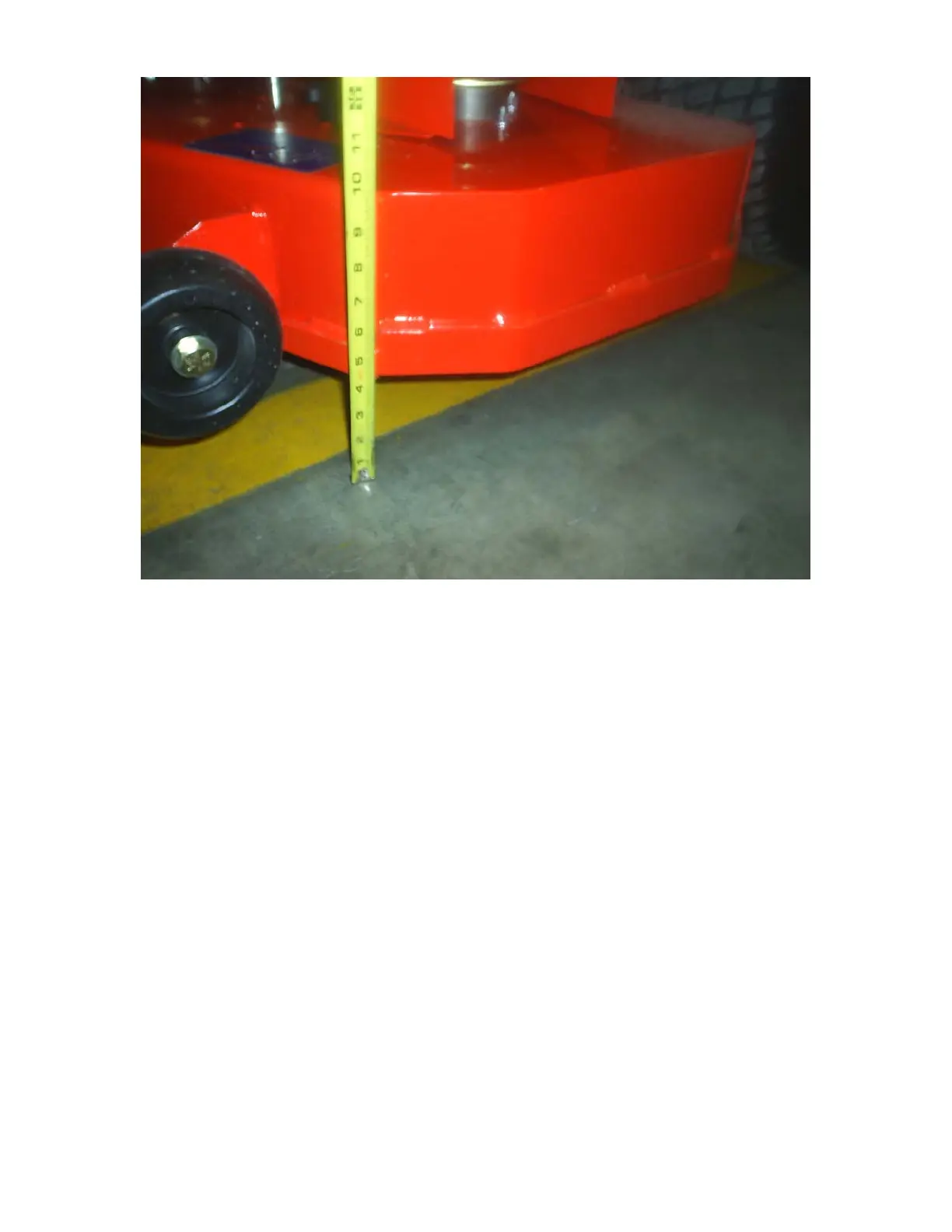 pressure in all four tires. Raise the deck up, and measure all four