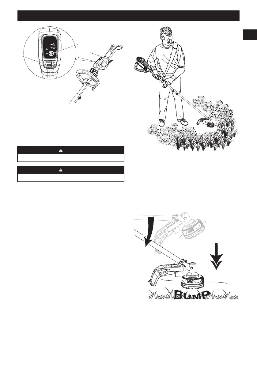 Utilice la punta del hilo de corte para cortar hierba.