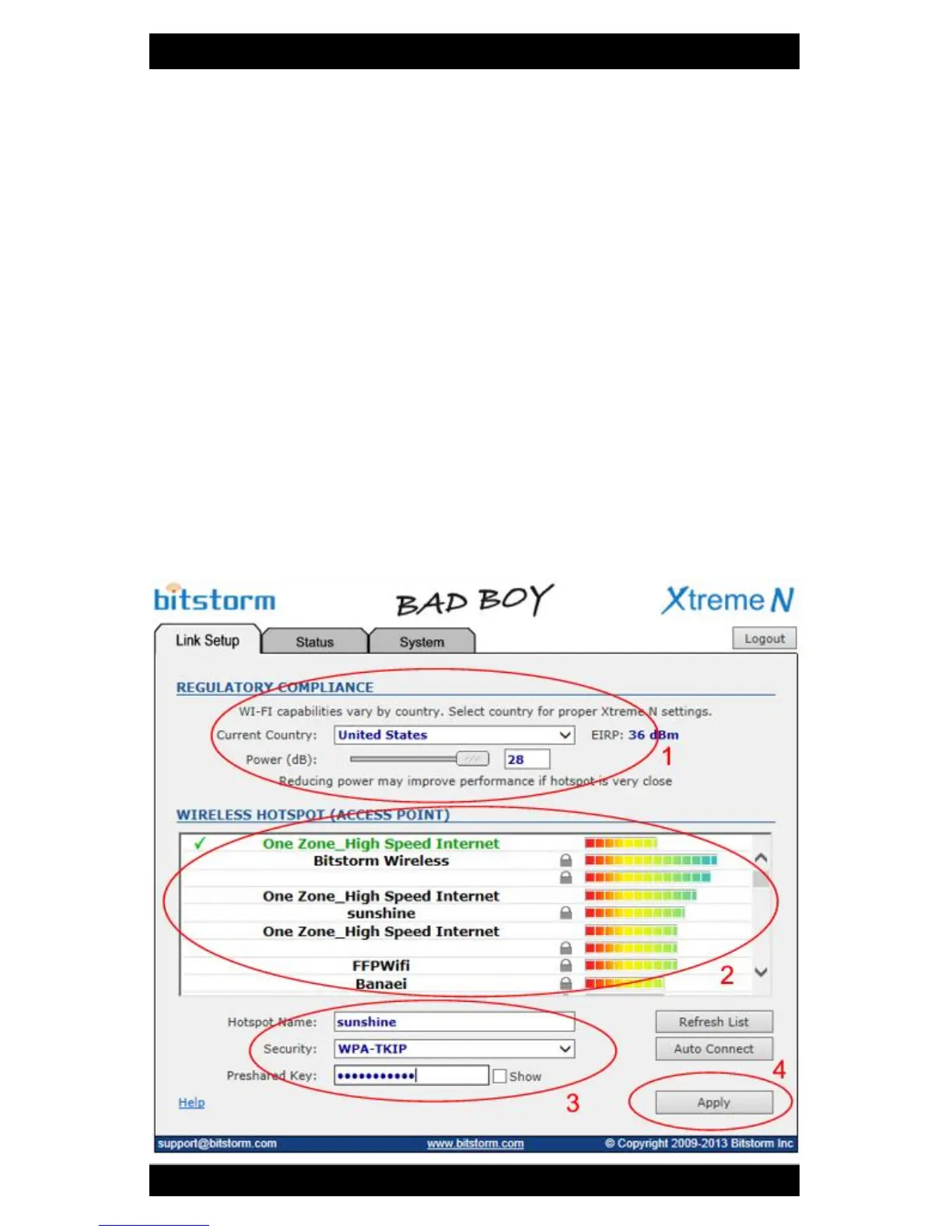 Refer to Fig 2. On the Link Setup tab, select the country that you are in