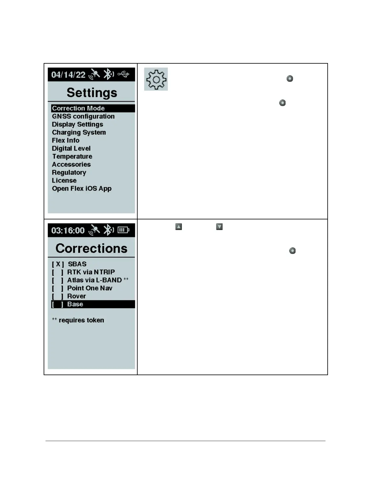Bad Elf Flex - Staring the Base; Correction Mode Selection