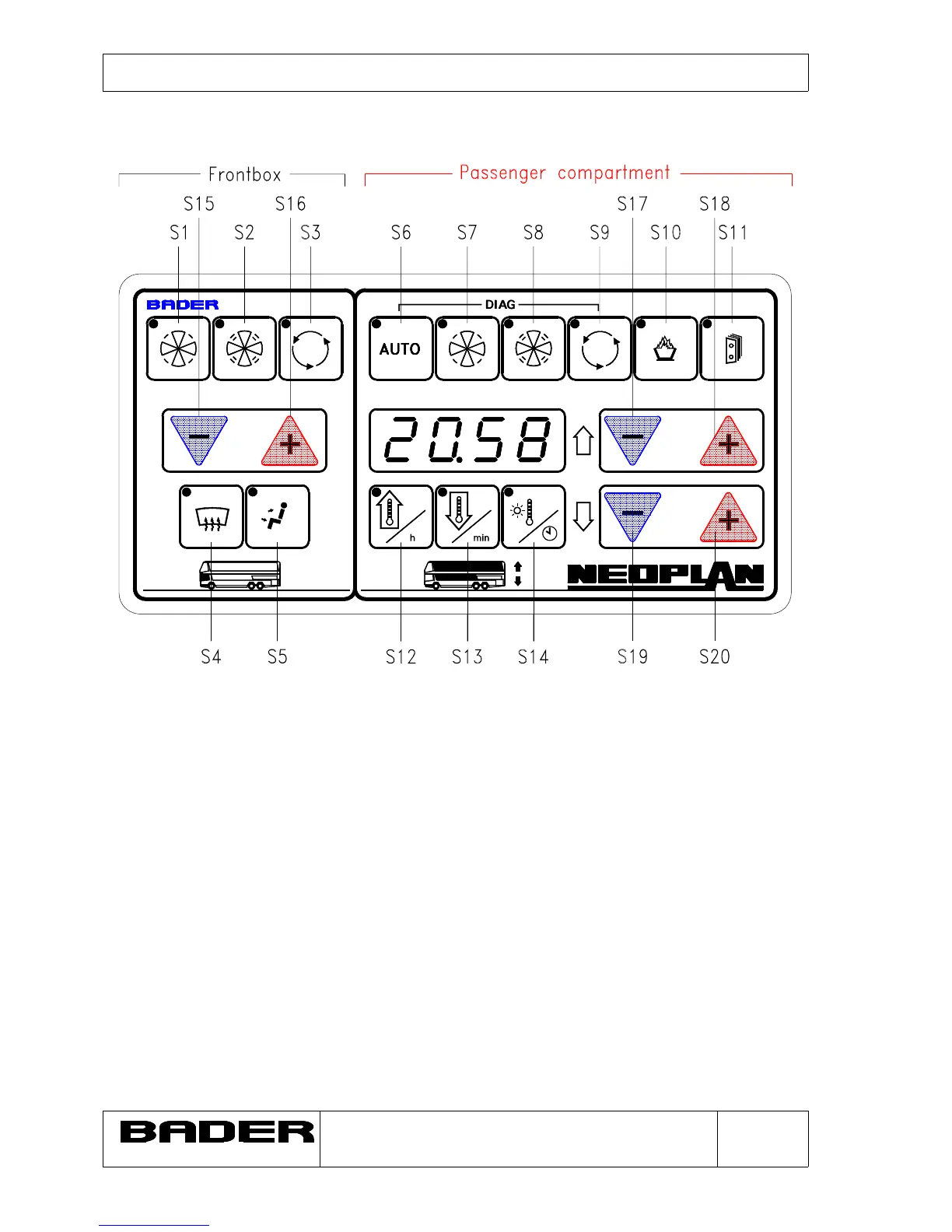 Key S15: Setpoint key (-) for valve position at the driver's cockpit (front box)