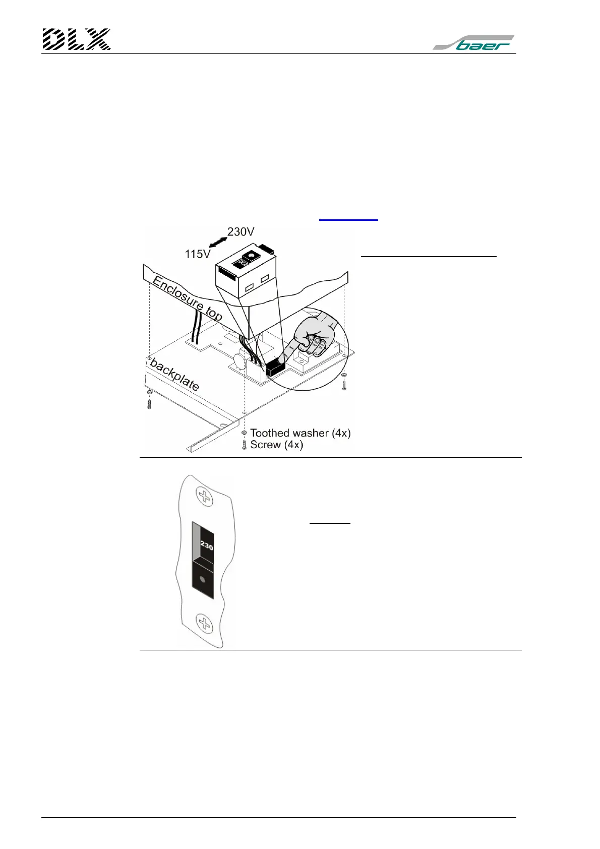 the housing. Possible voltages are 100/115VAC and 200/230VAC. Please