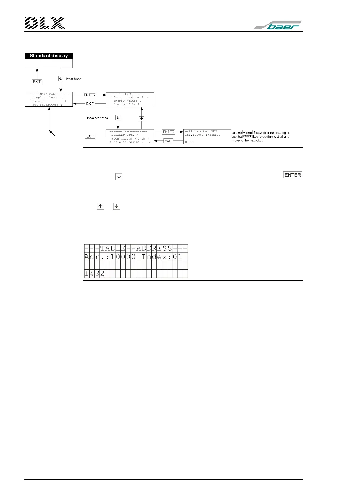 DLX will show the selected table addresses on the display. For more infor-