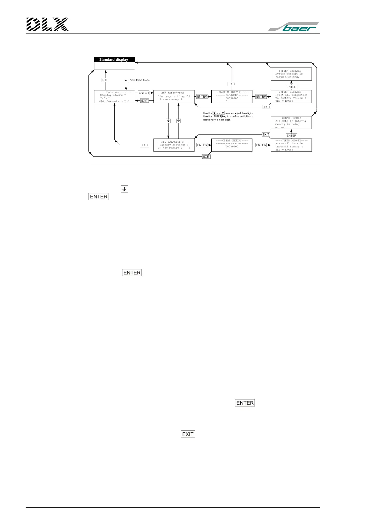 all parameters to factory values ?”. Press the key to confirm. The