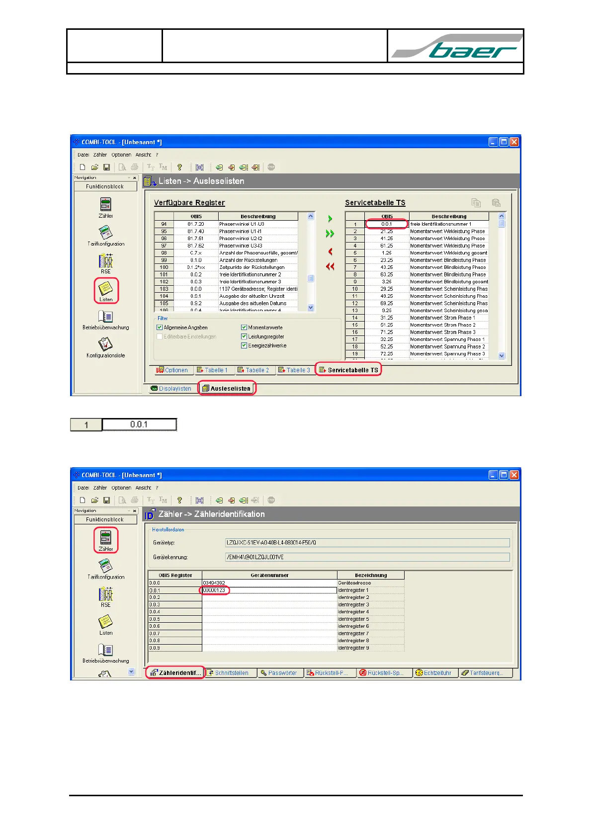 menu Meter Meter ID OBIS Register 0.0.1, e.g. value 123 (:= 00000123):