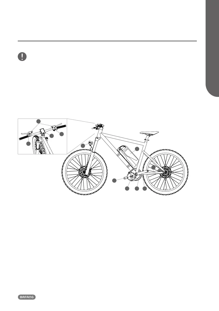 4. Chain Wheel 5. Display 6. Control Panel 7. e-Brake Lever/Sensors