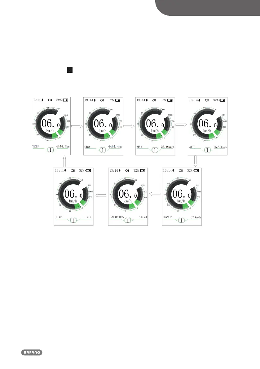 → total distance (ODO) → maximum speed (MAX) → average speed (AVG) → remaining distance