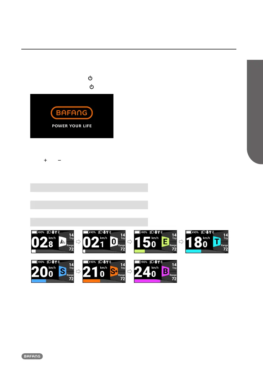 press " " or " " to switch the power-assisted mode and change the power of the motor.