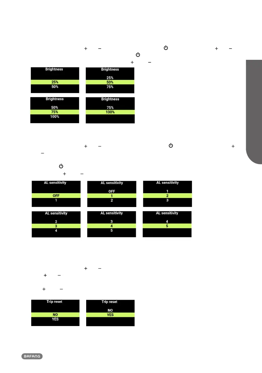 Enter the "Setting", press " " or " " to select "Trip reset". Press "Power button" to enter the setting,