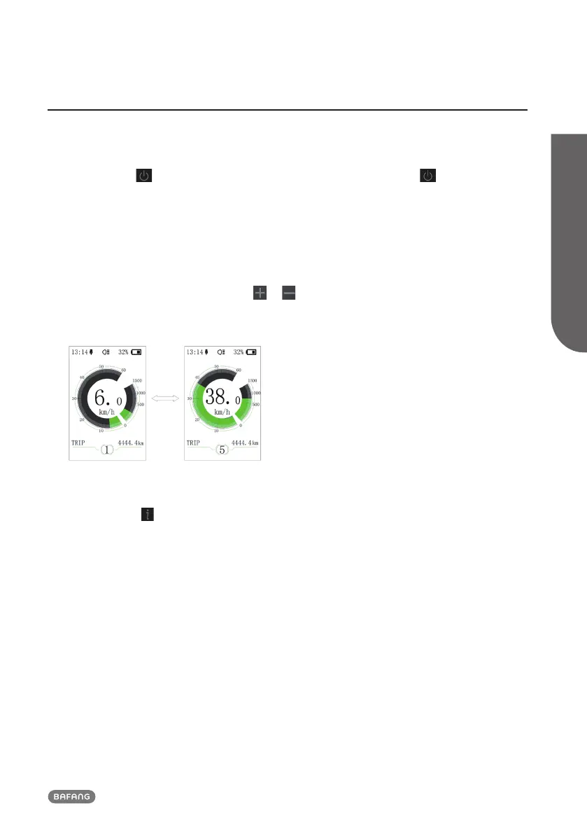 Press and hold (>2S) on the display to turn on the system. Press and hold (>2S) again to turn