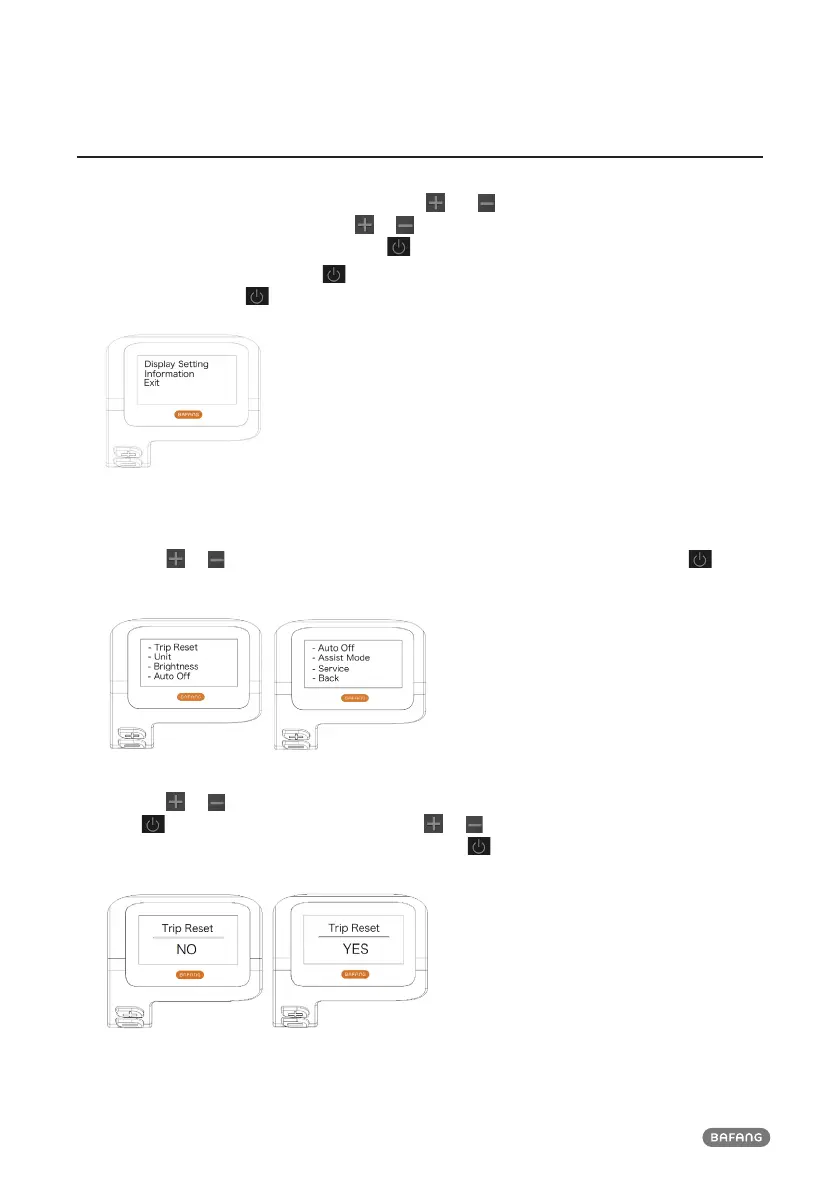 Press the or button (<0.5S) to highlight “Trip Reset” in the Display setting menu, and then