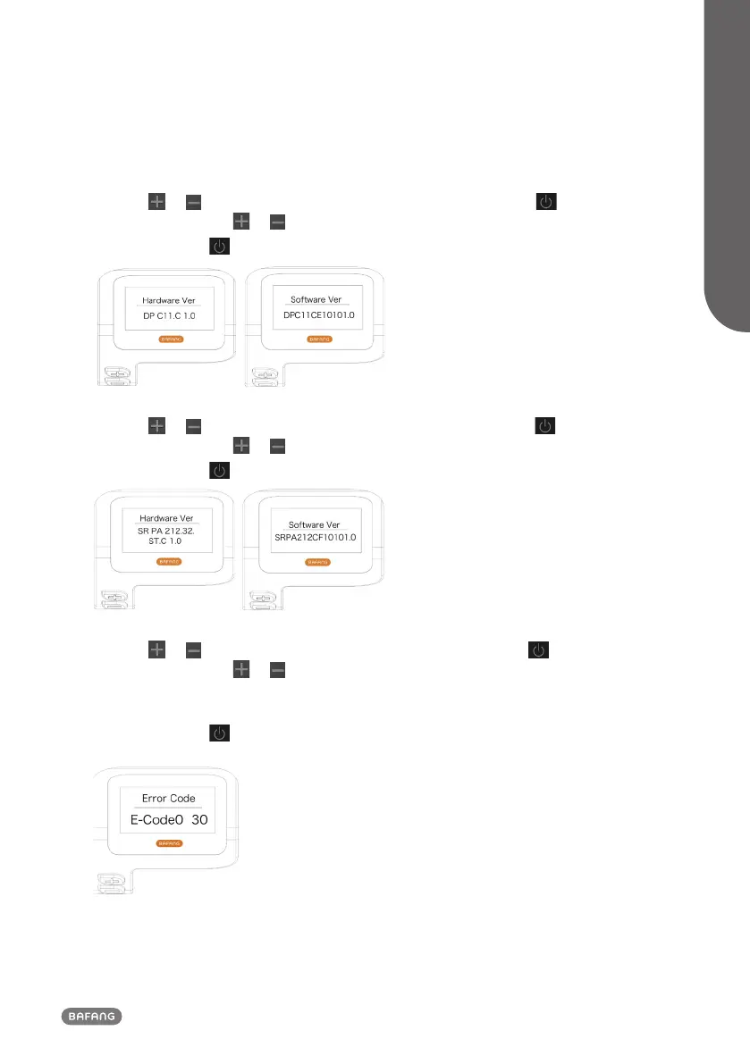 confirm. Now press the or button (<0.5S) to view Hardware Version or Software Version.