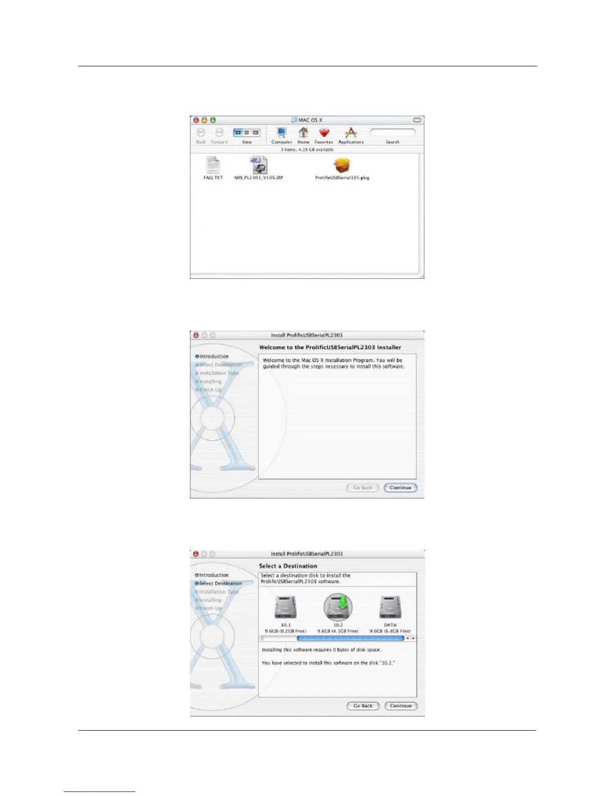 5.11.3 Run the ProlificUSBSerial105.pkg and click “Continue” to install the