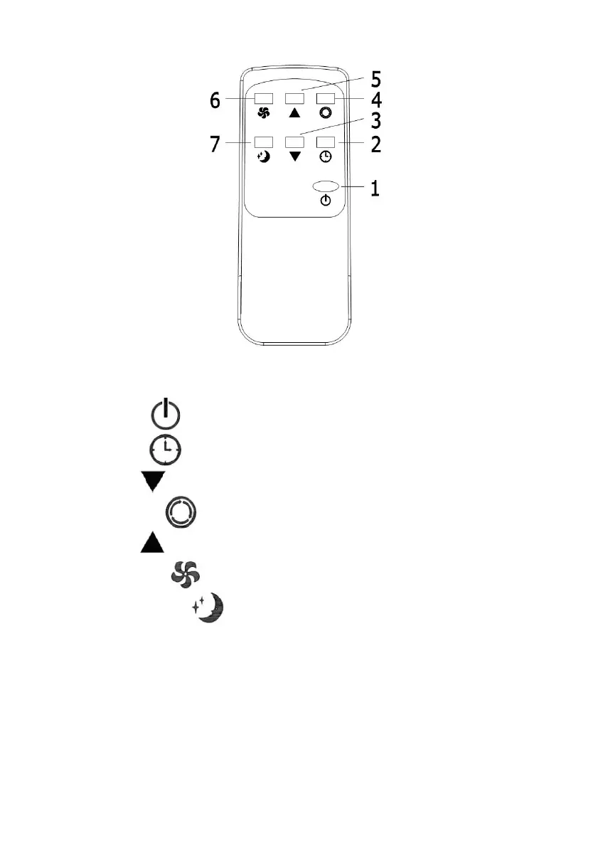 4. Funktion: Tryk på for at skifte mellem køling, ventilation og affugtning.