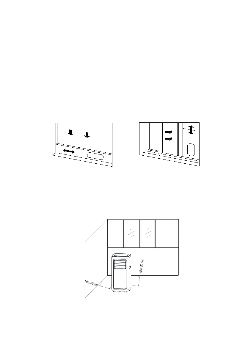 Pomaknite uređaj s postavljenom grijaćom cijevi i priključcima ispred prozora. Razmak