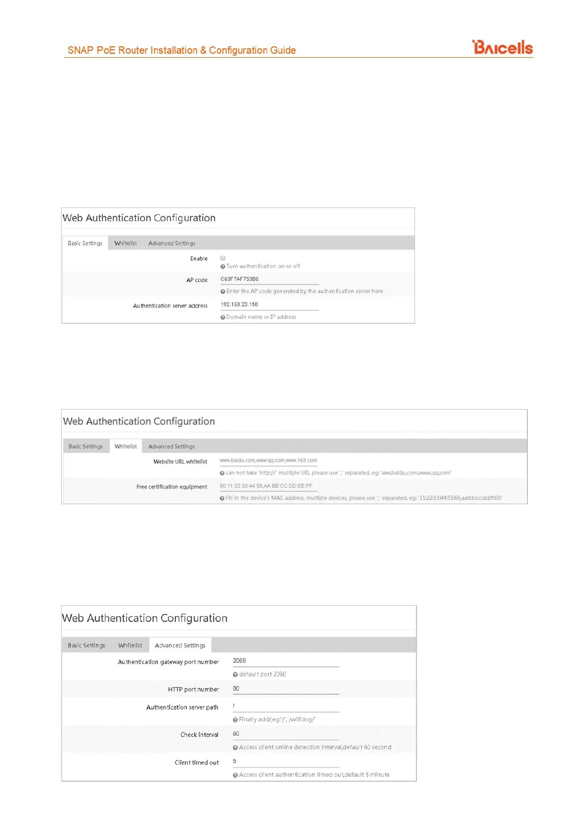 authenticated through the remote authentication server. To enable WiFidog, in the Basic Settings tab click