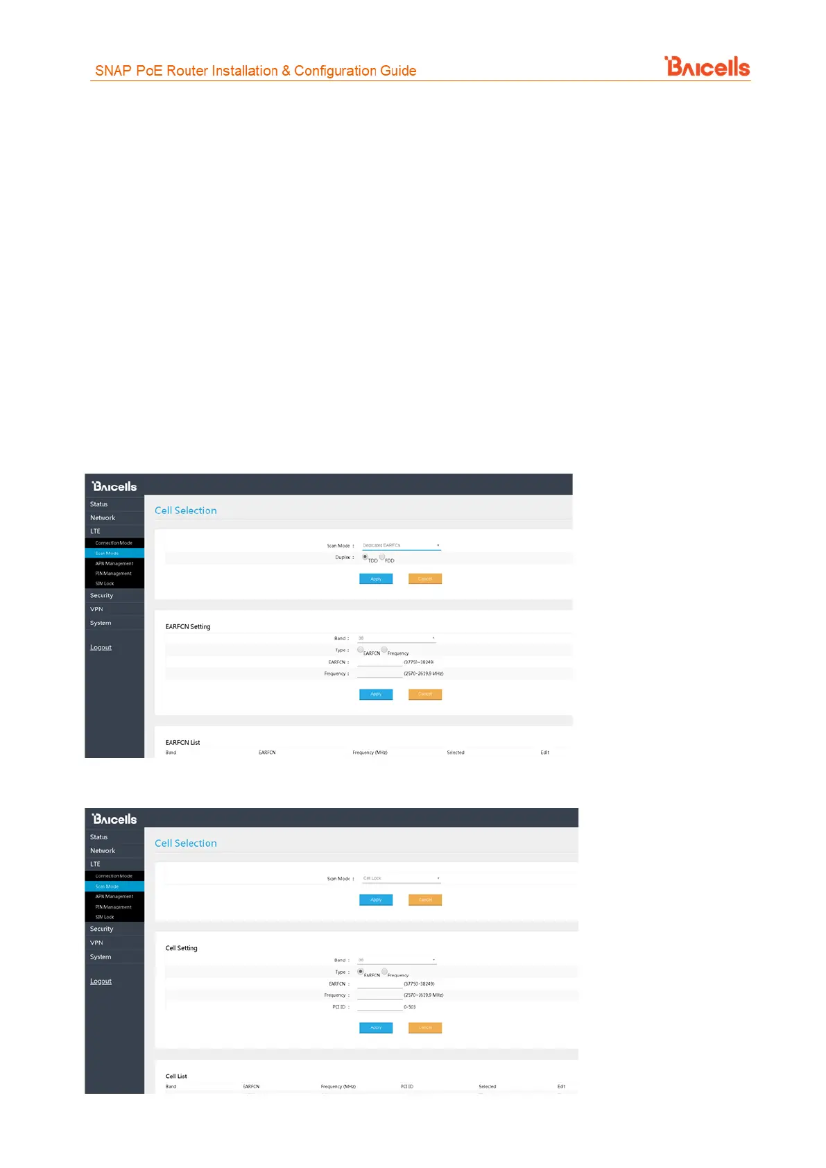 − The CPE will scan the dedicated EARFCN or frequency list first when it is powered on.